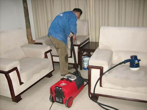 當(dāng)清潔劑噴在沙發(fā)上一刻鐘左右用蒸汽機(jī)對(duì)沙發(fā)表面進(jìn)行加熱,然后用干泡清洗機(jī)對(duì)沙發(fā)表面進(jìn)行清潔。