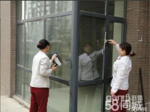 5.擦玻璃:先用油漆刷把玻璃上大量的粉塵去除,毛巾把玻璃框擦拭干凈,再用涂水器沾稀釋后的玻璃水溶液,均勻的從上到下涂抹玻璃,有頑固的膠、涂料用鏟刀清除干凈,再重復以上工序后用玻璃清潔刮刀從上到下刮干凈,用干毛巾擦凈框上留下的水痕。